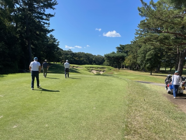 1番ロングは、ボギー。ここが一番パーが取れるのに。。。地主のM.TさんとS.Sさんがナイスアプでパー発進。
