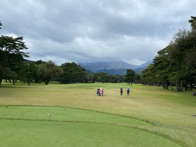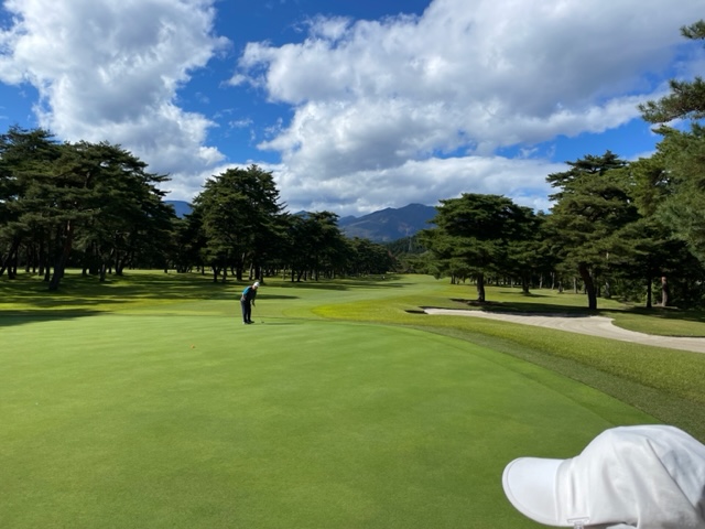 パターを転がしてアウトから。今日は青ティで進行します。今日は日光委員の東京都のA.Mさんとご一緒します。今日は3サムです。