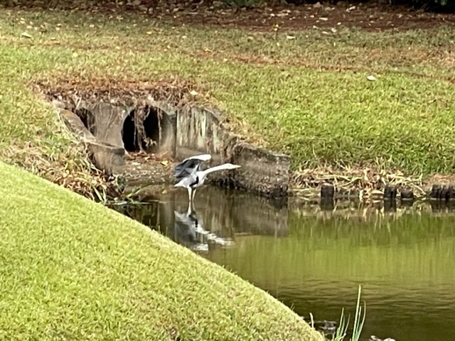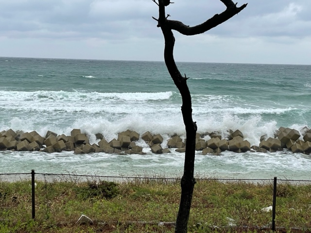 少々パター練習し、アウト1番から。今日は白ティで行きます。しかし、波が高い。こんな川棚は初めてだ。