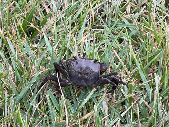 4番ミドルは、ドライバーはナイスもボギー。見事なアプから岡山県のT.Kさんがパーゲット。蟹さんを発見。