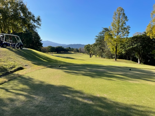 8番ショートは、カラーからパターで打つも寄らず入らずボギー。見事な1オンからT.Mさんが連続で無難にパー。