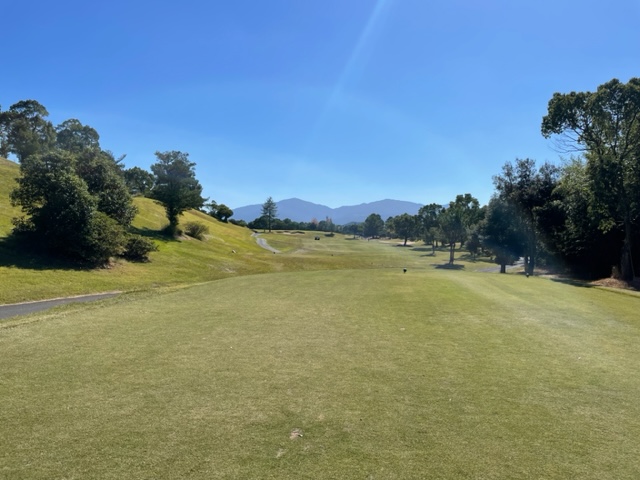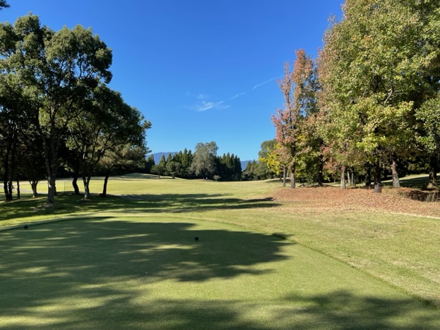 3番ミドルは、バンカーインからのセカンドが木の後ろの写真にあるようなスゲーライ。ダボが精々。ここもしっかり2オンのI.Mさんが無難にパー。