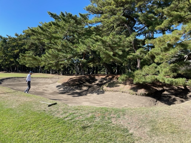 9番ミドルは、今日も2打目を右バンカーイン。ボギー。見事なアプからM.Tさんがパー。素晴らしい。