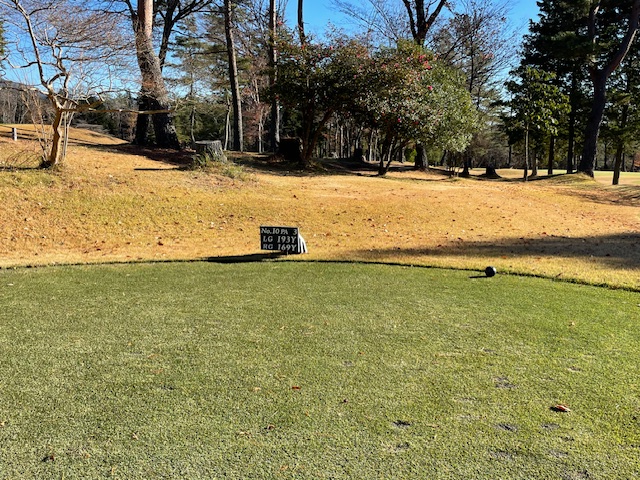 10番ショートは、7アイアンで9mに1オン。無難にパー。