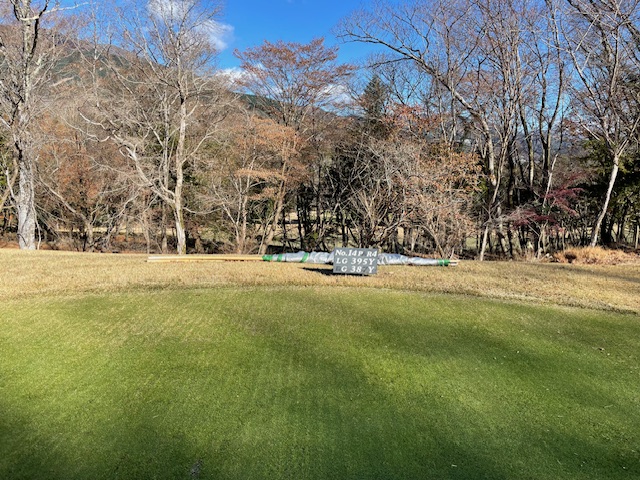 12番ミドルは、ドライバーを曲げましたが、3打目の77yを1ピンに。難しい下りを放り込んでナイスパー。