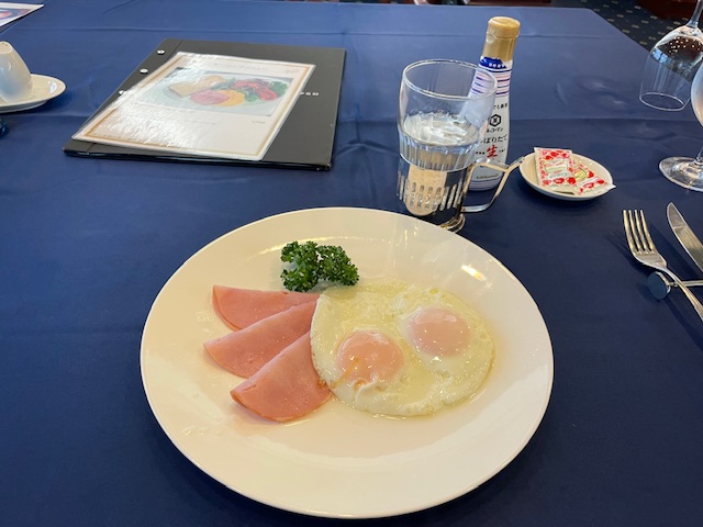 まずは、着替えてレストランへ。ハムエッグをいただきながら、独りミーティングです。