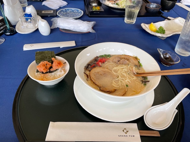 ランチは、今日からとの豚骨ラーメンセットにした。なかなかグーよ!