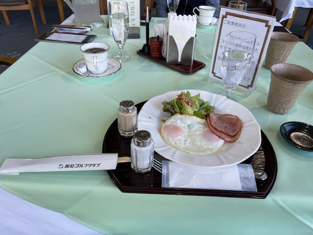 4名でまずはハムエッグを食しながら、ミーティングです。