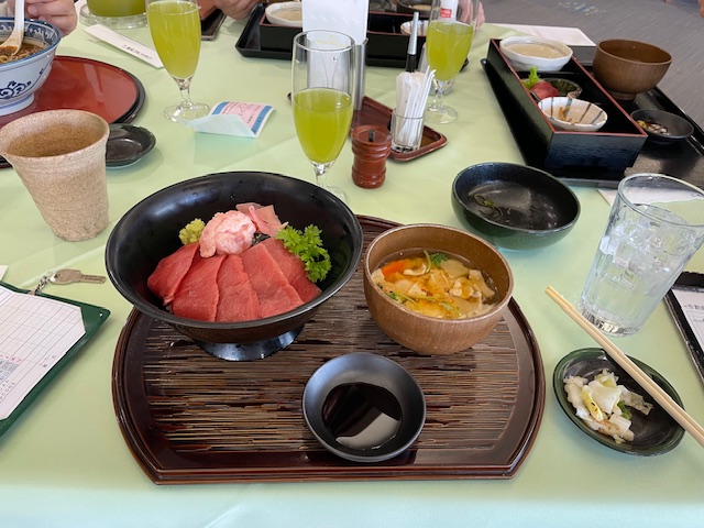 ランチは鉄火丼と豚汁をいただく。まずまず。