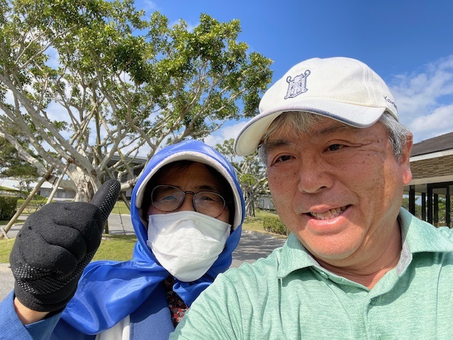 最初は後ろから打たねばならいY.Hさんのお供で青から打ちました。が、セカンド地点で昨日は心の中で大和笑莉奈プロとマッチしてました!と話すと、「ではマエシンさん、今日は実際にやりましょう」と話が弾み、今日は大和笑莉奈プロにマッチで挑戦することに。で、バーディ賞とニアピンも付けましょうとなる。