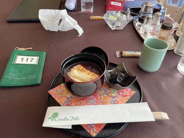 お風呂は後にし、8名で反省会。ぜんざいを食す。