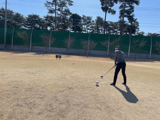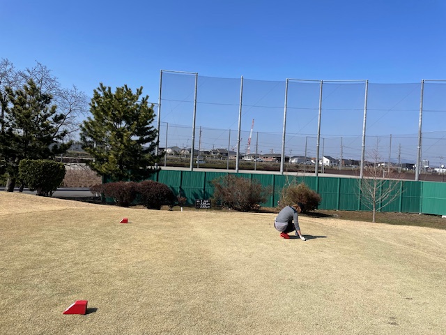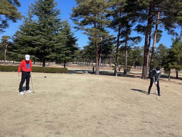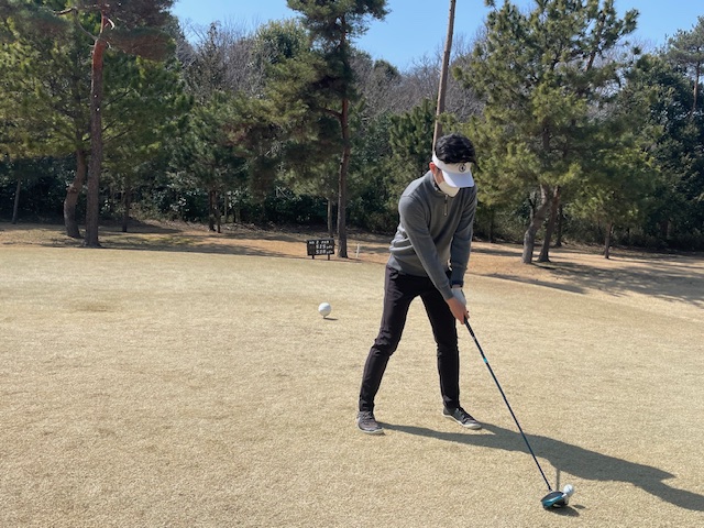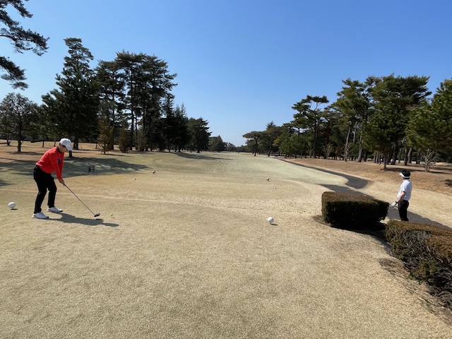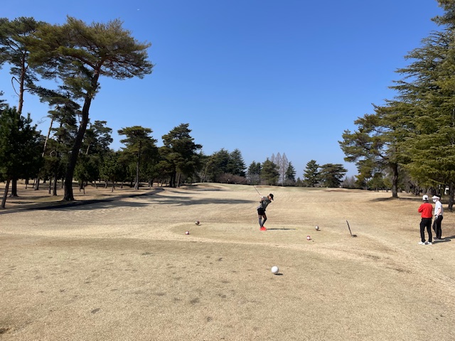その後、インから。今日は白ティで進行します。グリーンは高麗です。