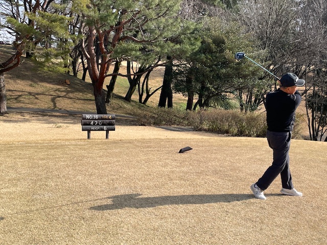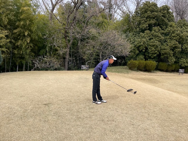 時間になり、下へ。遅れているそうです。3サムにて黒ティ使用です。アウトは改装中のため、1番がロングからミドルになっています。なので、今日はパー71の設定です。