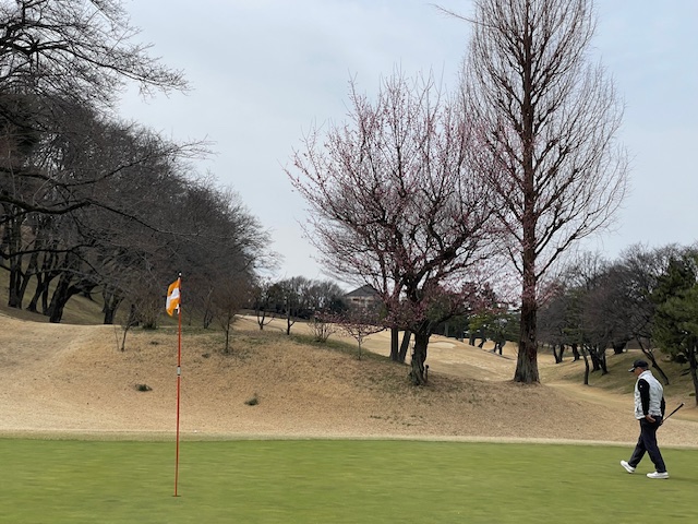10番改装中で少し短めのロングは、残り30yから5mにしか寄らず。残念パー。同じく7mに3オンからT.Hさんが無難にパー。