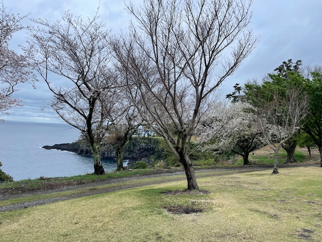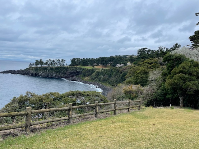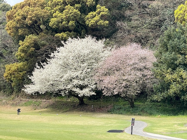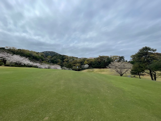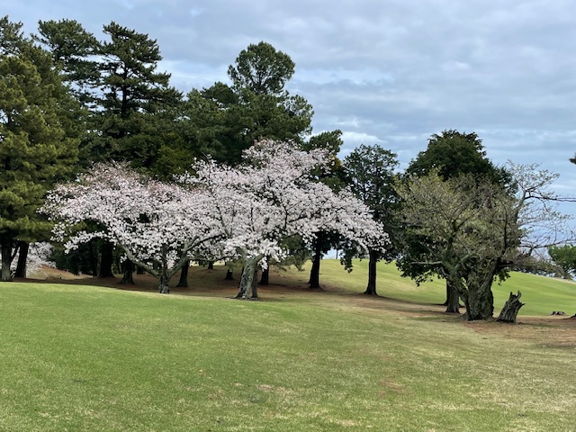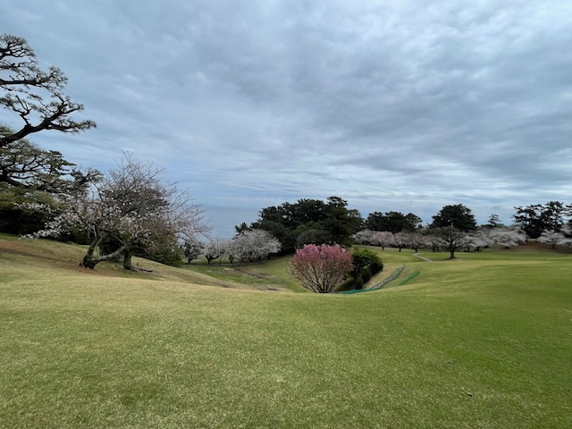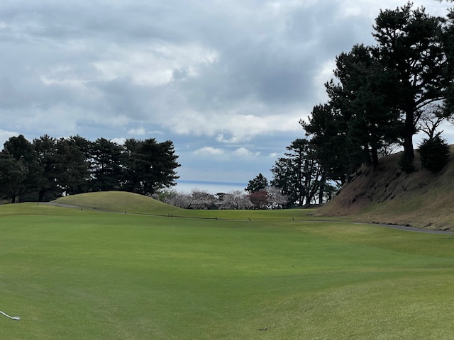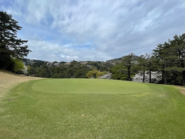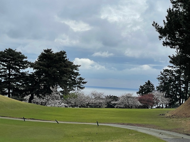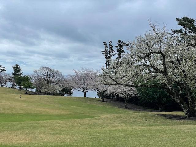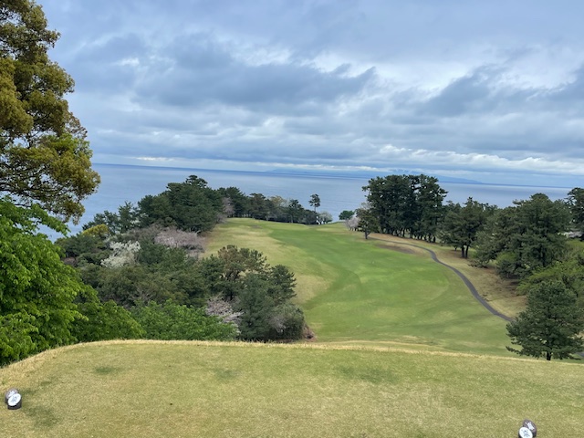大島コースの感想・・・・桜の時期に初めて来ましたが、イヤー、最高でした!海と満開の桜のコラボが最高でした。ゴルフよりここも日光同様に写真写真でした。雨の影響かフェアウェイやラフはイマイチでしたが、グリーンは秀逸でした。