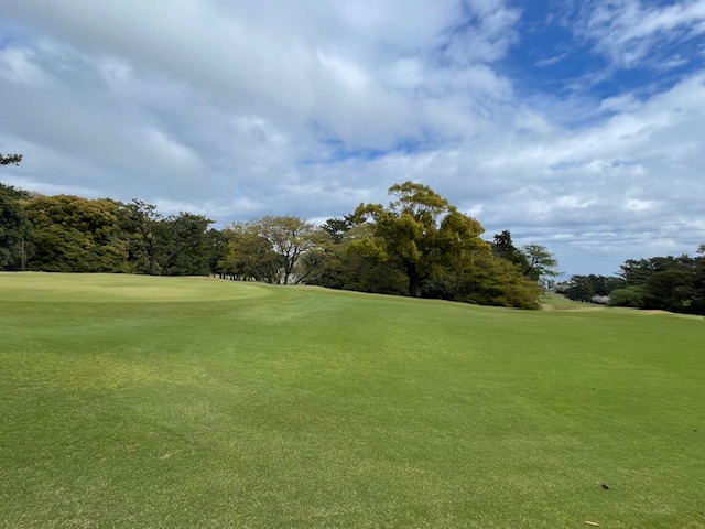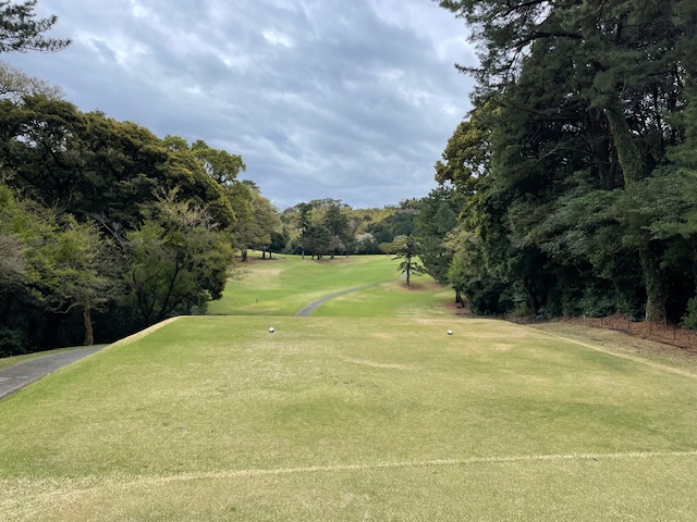 2番ショートは、4アイアンで打つも芯に当たらず。セカンドがショート。ダボ。