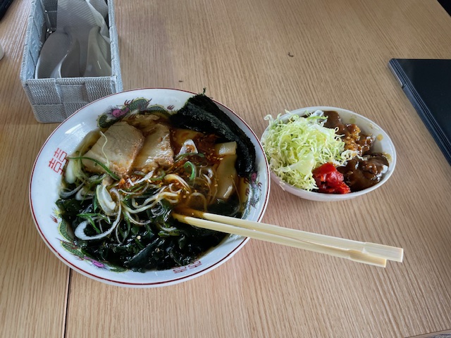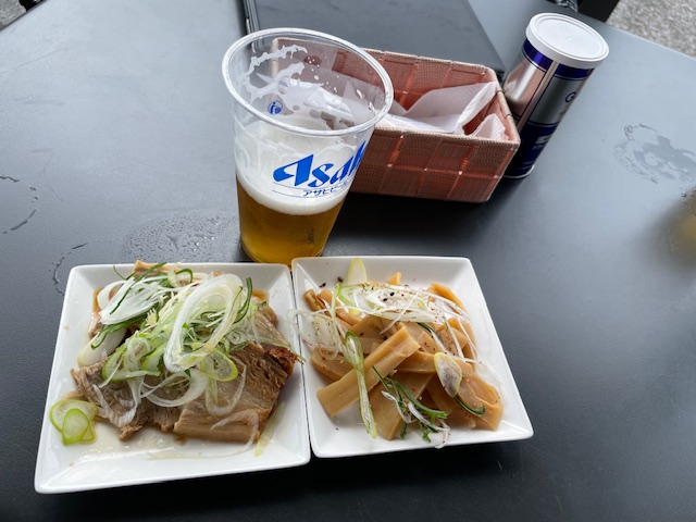 チャーシュー、メンマのおつまみ類と小生で軽く。