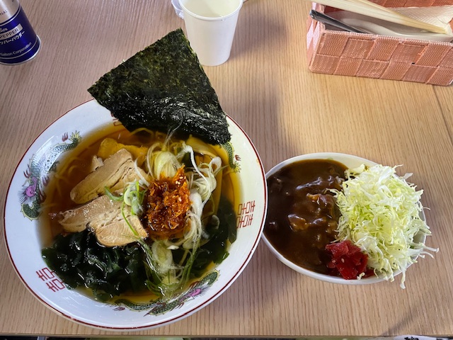 今日もランチは磯ラーメンとカレーを食す。ナイス!雨、寒さ、プレー時間を考慮し、ここで止めましょうとなる。