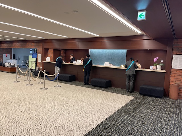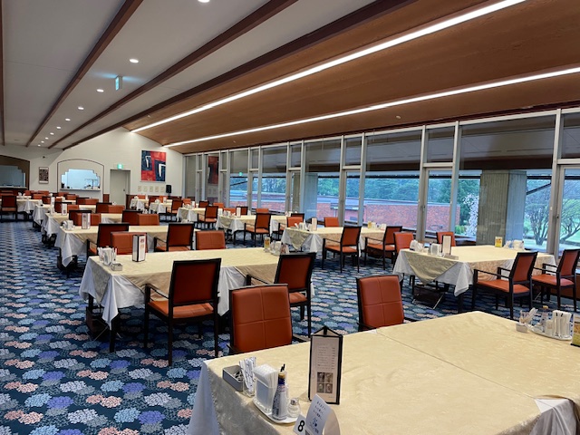 かなりの雨量の中、やって来ました。道中、財布を忘れたことに気付き、高速を降りて戻ろうとしたり、ドタバタがありましたが、結局、そのままやってきてしまいました。出来るのでしょうか?幹事クラブの方曰く「この雨でもコンディションには問題がないと伺っているので、開催します」とのこと。で、挨拶に立っておられたK支配人に財布を忘れた事情を話すと「承知しました。フロント係に申し伝えて来ます」とのこと。