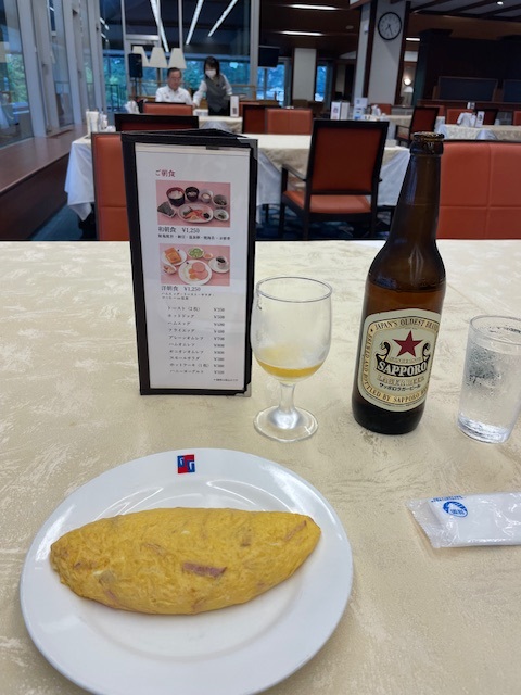着替えて、レストランへ。大好物のハムオムレツを食す。美味い!多くの方々が取りやめてお帰りになるそう。私は・・・やりますよ~。