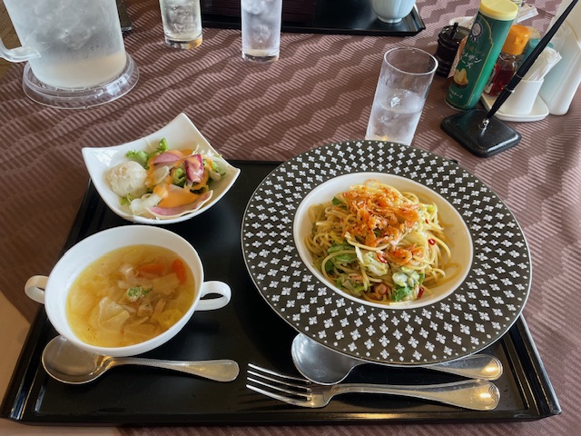 ランチは、桜エビのペペロンチーノをいただく。なかなか美味。