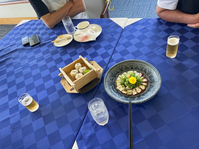 42回。2時間半。ちょっと時間が掛かりましたね。あれ、茶店に寄ったが、どこでだったか?とにかく、たこ玉と焼酎の水割りをいただきました。