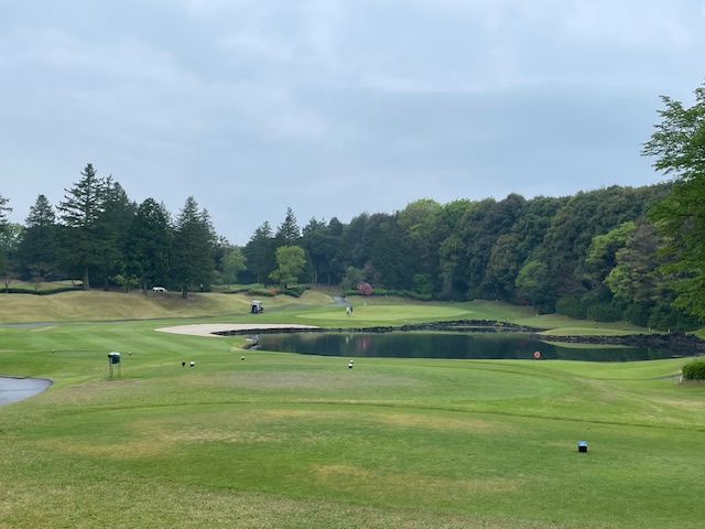 12番ショートは、左に外してからの2打目が池付近まで。アホのダボ。
