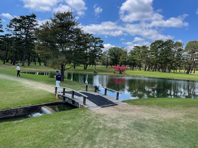 9番長いミドルは、ドライバーはナイス。セカンドを果敢に5wで2オンを狙う。完璧と思われたが、無情にもお池に。ドロップして1.4mに4オン。で、外して痛恨のダボ。