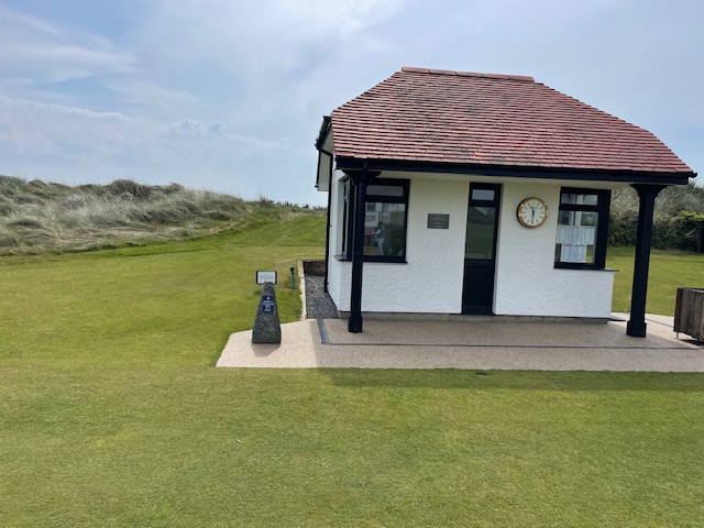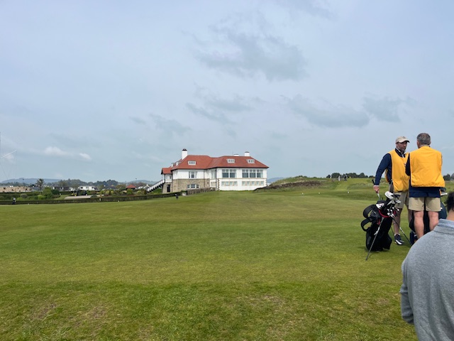 ちょいとお手洗いとビールをちょい飲みする。ここはミュアフィールドなどと同じく、リンクスゴルフ場では珍しいタイプの日本式で9ホールで戻る形式になっている。