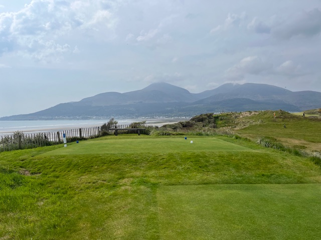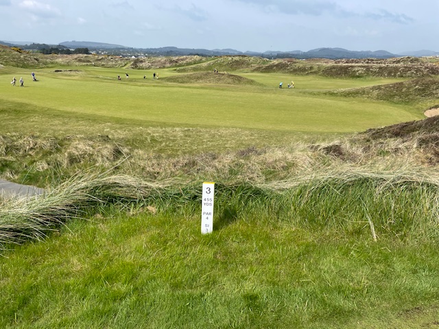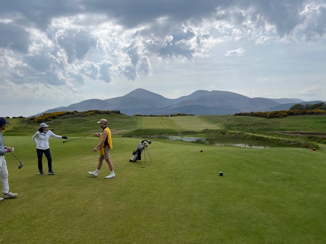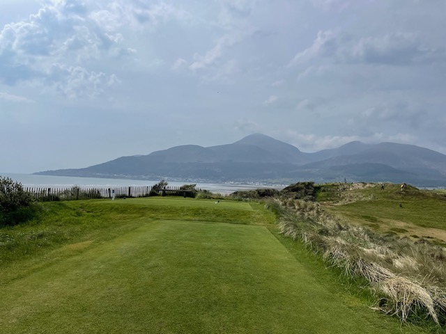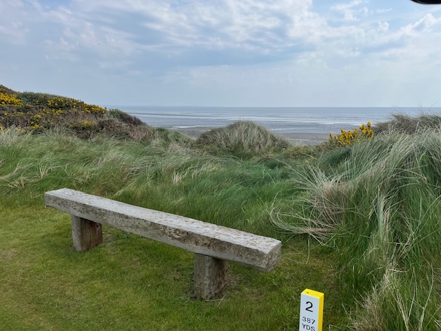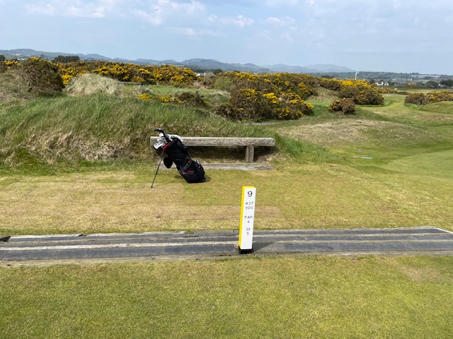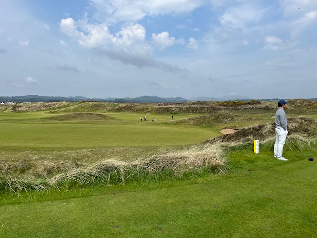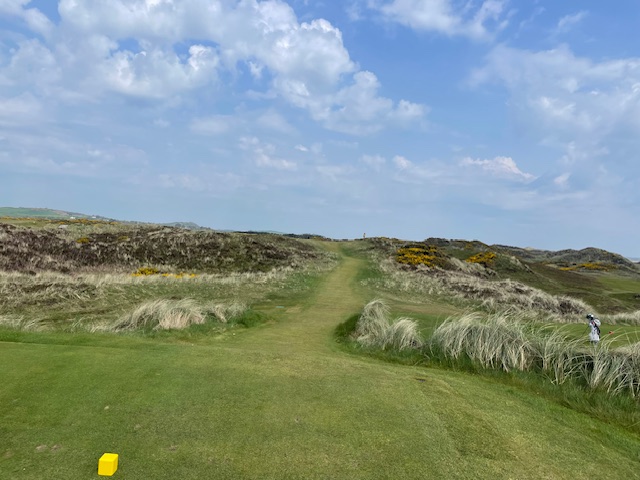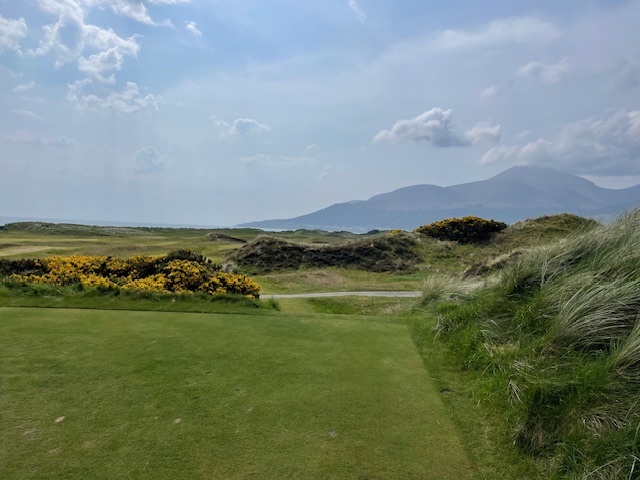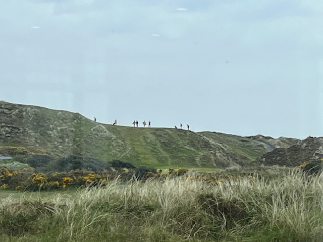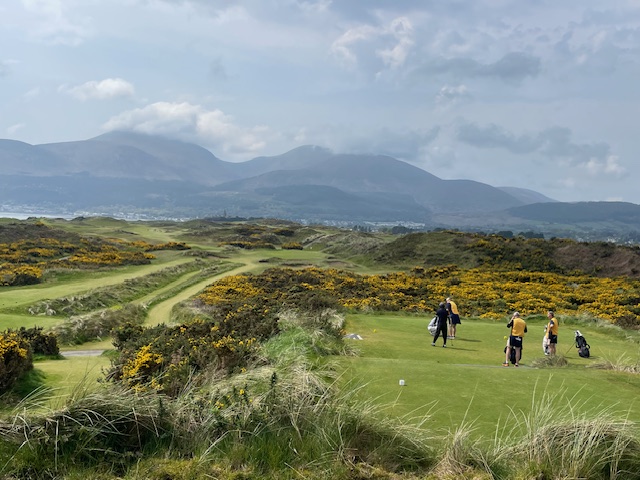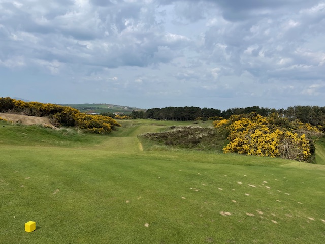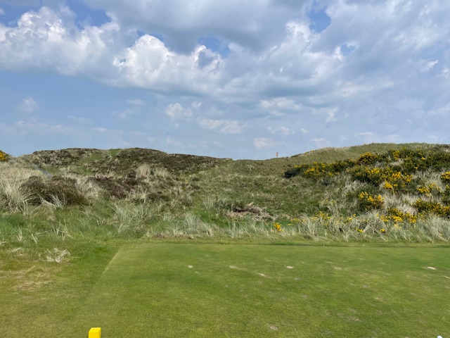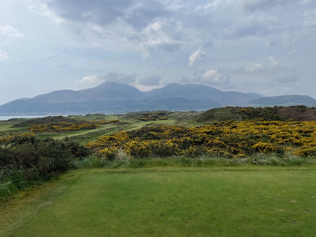 ロイヤルカウンティダウンの感想・・・・今の時期はゴースの黄色い花があちこちに咲き乱れ、干潟のような海とリンクスには珍しい山とのコントラストがとても美しいゴルフ場でした。かなり戦略性が高く、点で攻めていかないとスコアが出ません。ここもフェアウェイ脇のバンカーに入れたらどうにもなりません。マエシン、ついに念願のロイヤルカウンティダウンを廻れました。