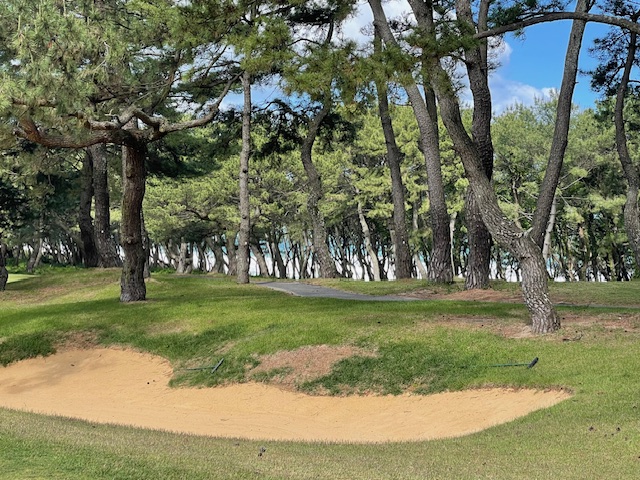18番ミドルは、これまた左の隣との間へ。チョン出しボギー。