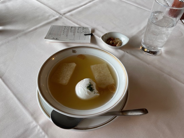 ランチは、サラダとニンニクスープ。大変美味。ランチもS.Tさん、ご馳走様でした。