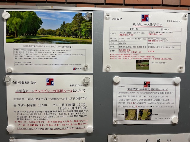 相模原の感想・・・・ここはホント水はけが良いゴルフ場です。2か月半まえの時も大雨台風でした。で、今日もかなりの雨量でしたが、今日、カジュアルで動かしたのは最後の18番のエプロンのところだけでした。ホント、凄いよ。で、設備も接客もレストランも大変グッドです。来年、東で日本シニアオープンですが楽しみですね。ウイークポイントは平日の朝の渋滞と水はけが良いのになぜかフェアウェイの芝が弱いことかな。