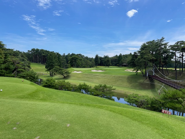 15番ミドルは、ナイス位置からバンカーイン。アホ。ボギー。素晴らしいアプからS.Iさんが銅竿パーのベスト!イーブン。1ダウン。