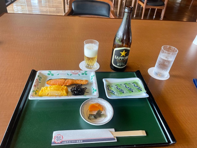 レストランでは、今日は黄金水と和朝食をいただきます。今日はお世話になる会員のM.Iさんからお誘いを受けてやって来ました。
