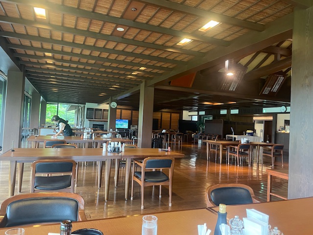 まずは、着替えて、レストランへ。すると、昨日プレー後楽しく語らわせていただいたK.Hさんが「前田さん、昨日お渡しできなかったんで」とわざわざ名刺を私のテーブルまでお持ちくださった。小金井の会員さんにこのようなことをしていただいて・・・恐縮も恐縮ですが、ホント、皆様、腰が低い方ばかりでホント素晴らしい。