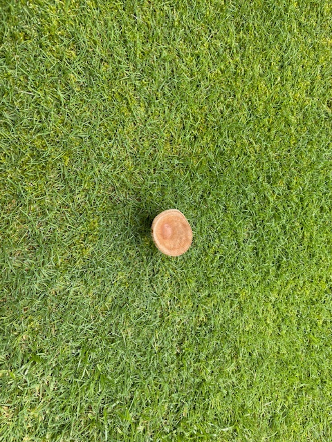 8番ショートは、竜巻球で左へ。ややこしい位置からPWで転がして5mに。残念入らず。見事なティショットで8mに1オンのS.Iさんが無難にパーでべスト付きの2階建てのニアピンをゲット。やられた~。