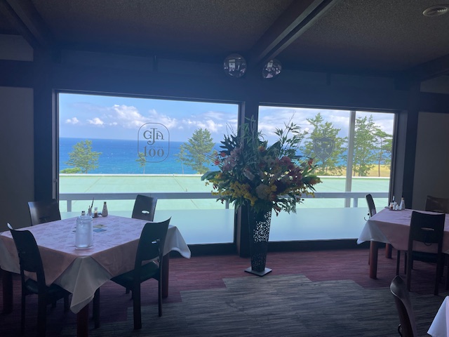 まずは、レストランで黄金水タイムです。眺めが最高です。