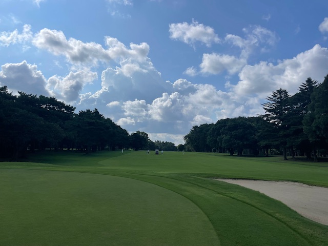 1番ロングは、左のクロスバンカーイン。安全脱出。3打目は大きく右へ。4オンのボギー。ぶっ飛ばしの縁のH.Iさんが楽々バーディ。