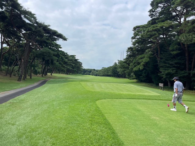 15番ロングは、ドライバーは左林へ。斜め前方へ。4打目が乗らず。ダボ。見事なパター力でT.Tさんがパー。
