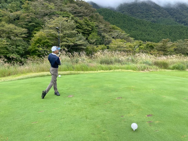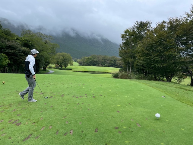 11番ミドルは、ドライバーを曲げて3オン。ボギー。見事な2オンからK.Tさんが無難にパーで連続ベスト。