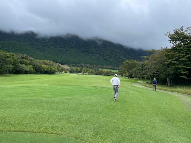 18番ミドルは、ドライバーはナイスもセカンドがショボくボギー。ここまで1アンダーだったK.Tさんが痛恨の残念ボギー。