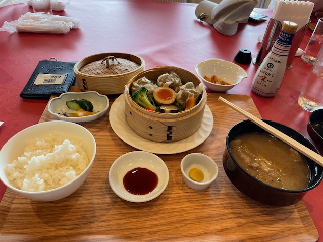 ランチは、いつもの焼売ドン汁大に変更定食を食す。ナイス。