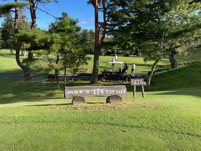 10番ショートは、7アイアンで6mに1オン。無難にパー。同じくナイス1オンからT.Aさんと41歳とお若いH.Hさんが無難にパー。また、ナイスパター力でK.Tさんもパー奪取。