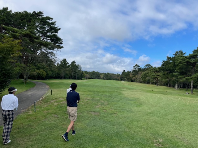 あっという間に時間になり、慌てて下へ。パターの時間もなく、インから。今日は白ティ使用です。