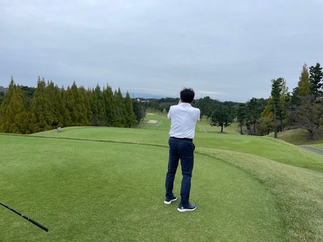 パターを少々転がして、西アウトから。今日はヨコシンプロがご一緒ですから、当然黒ティからです。なんか今日のキャディYさんはナイスな予感。