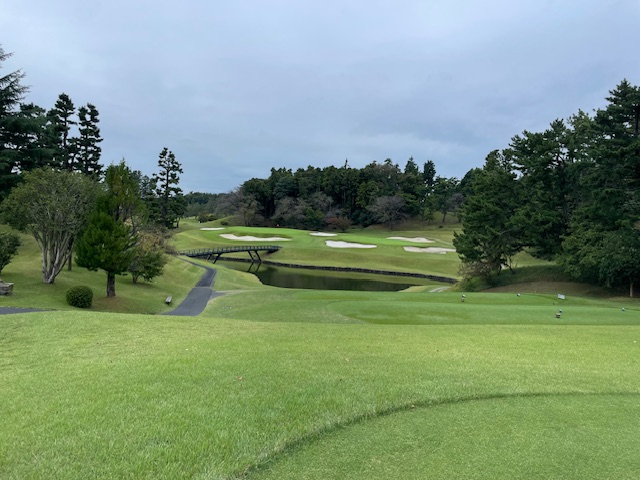 9番435yミドルは、ドライバーは左ラフで木が掛かる位置なので、セカンドは5アイアンでレイアップ。で、残り30yから10mにしか寄らず。ボギー。K.Yさんとは分けとなる。ヨコシンプロは9mに2オンし、無難にパー。
