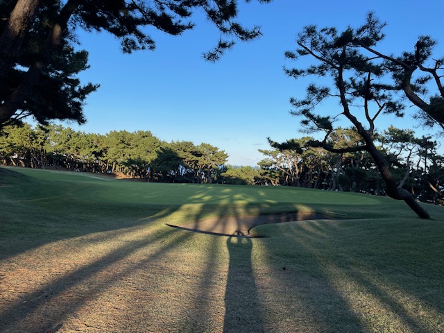 13番ミドルは、まずまずの位置からのセカンドが酷い。結局4オンからダボ。見事な2オンからK.Oさんが無難にパー。ここの2オンは素晴らしい。