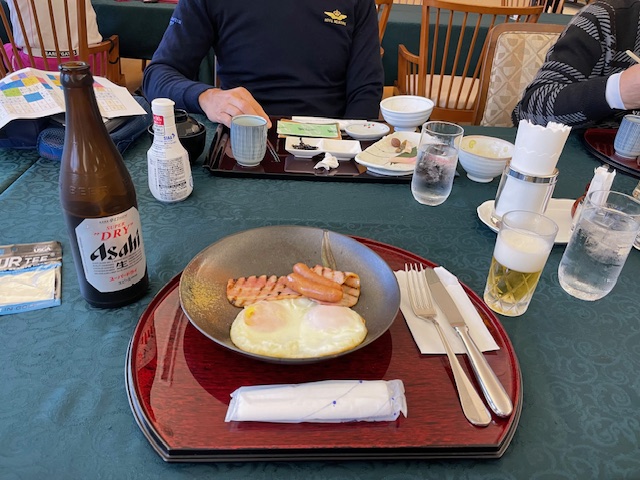 一緒にベーコンエッグを食しながら、懇談会に加わる。