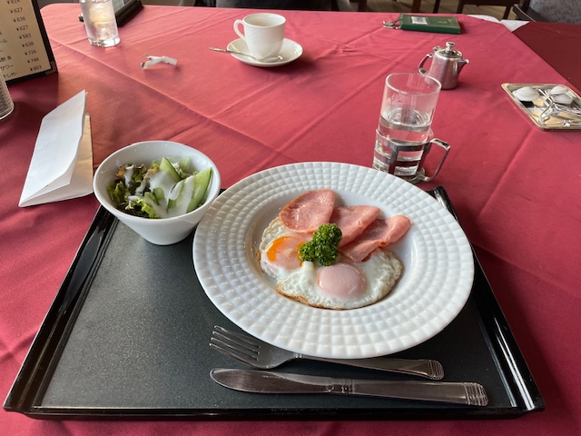 まずは、到着後、レストランでハムエッグを食しながら、皆様方とミーティングです。